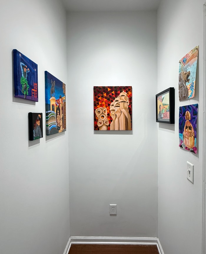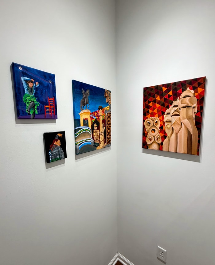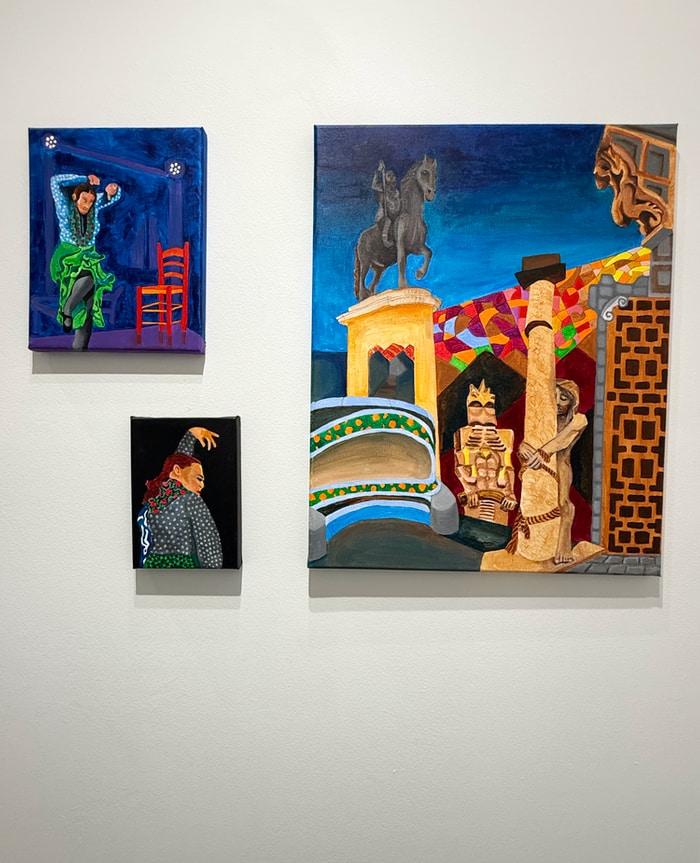 Spanish Dreams includes seven paintings by Mark McKinney which are all based on travel experiences in Madrid and Barcelona in October 2024, including flamenco dance, architecture by Antoni Gaudi, Las Meninas by Diego Velazquez, and more.