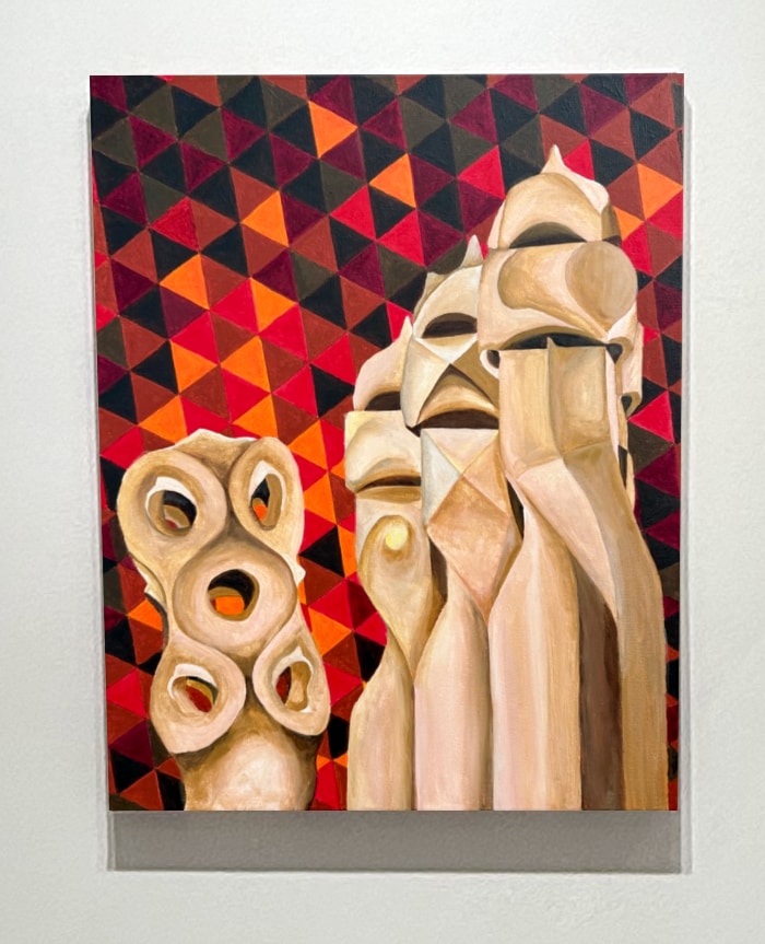 4. "Rooftop Sentinels, Barcelona," 2025, by Mark McKinney. 20 x 16 inch painting with acrylic on canvas.
