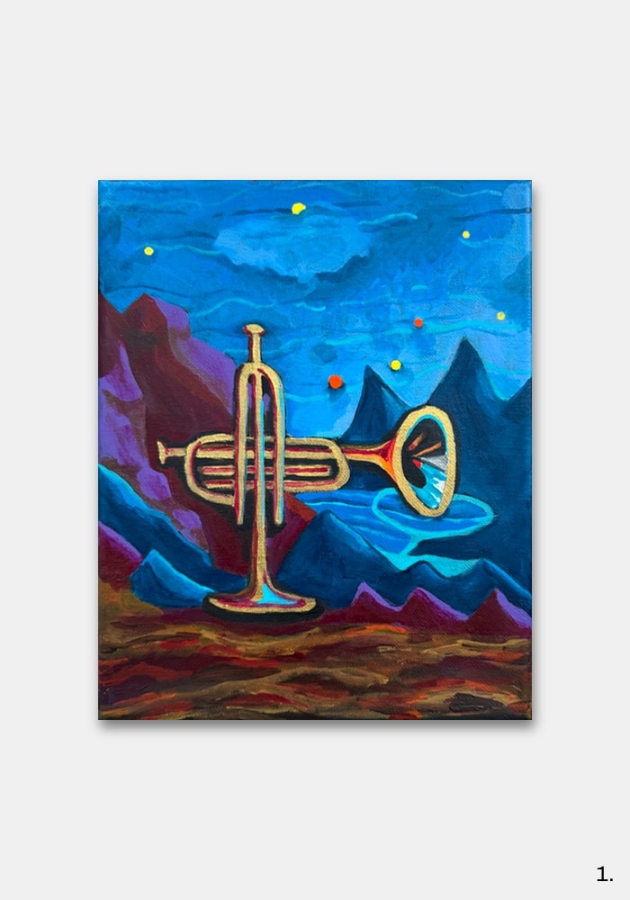 1. "An Instrument of Change," 2025, by Mark McKinney. 10 x 8 inch acrylic on canvas.
