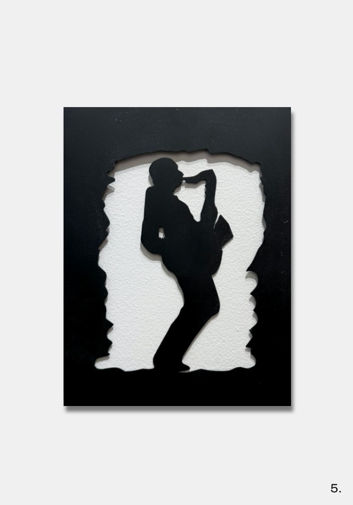 5. "Untitled (Saxophonist)," circa early 1990s, by Jerry McKinney. Metal sculpture, 12 x 9 inches. Not for sale.